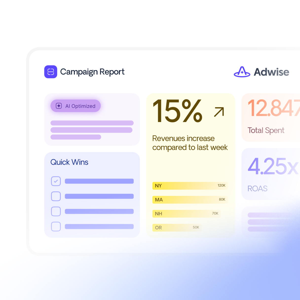 Adwise analiza Google y Meta, detecta oportunidades reales y te dice qué tocar primero para mejorar rendimiento.